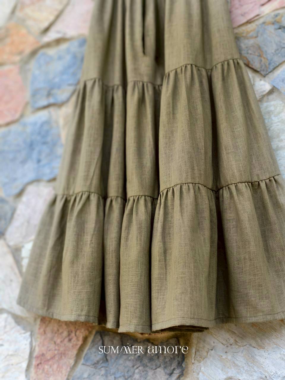 กระโปรง3ชั้น Delhi #22 - Linen เขียวอ่อน