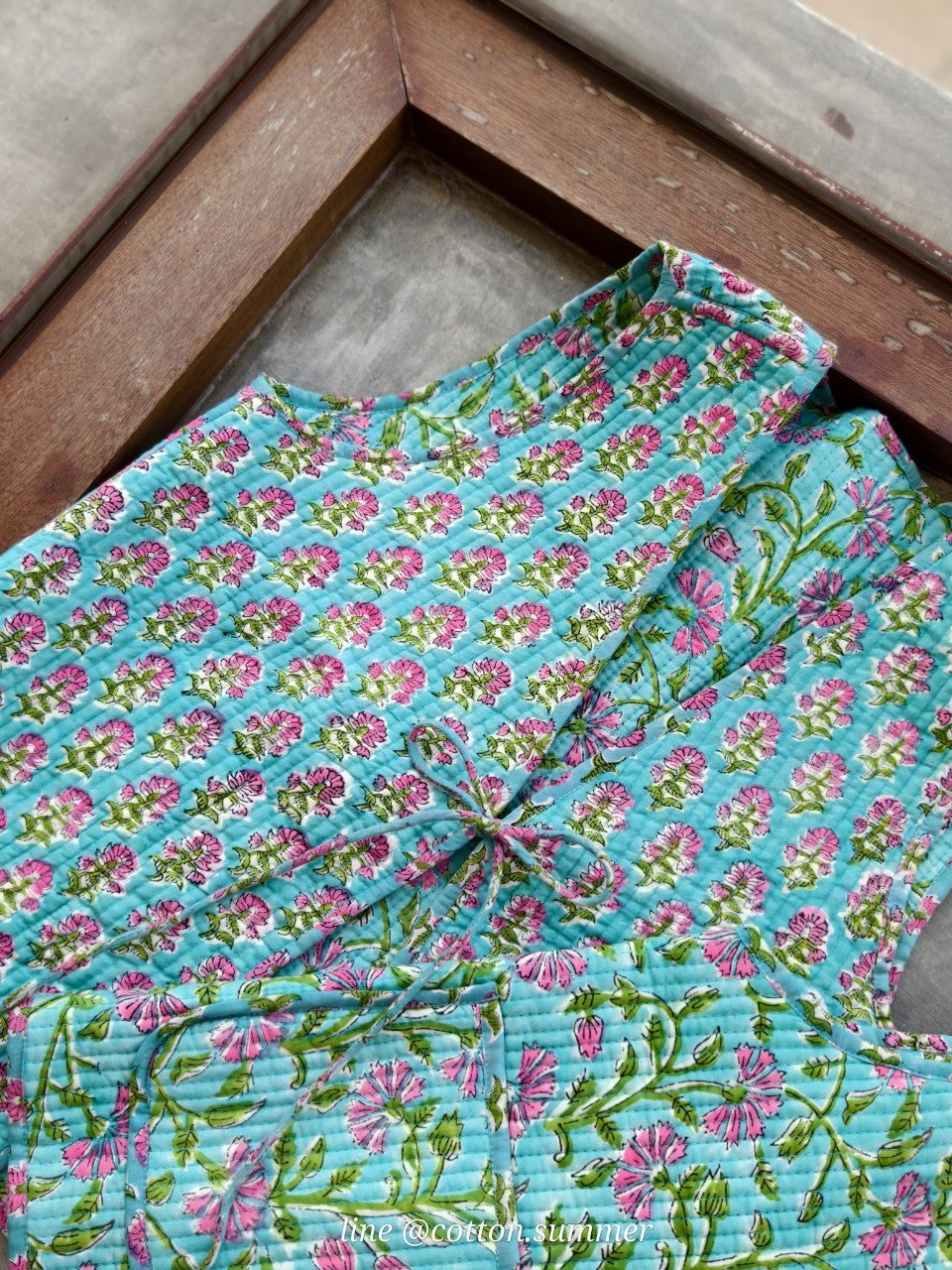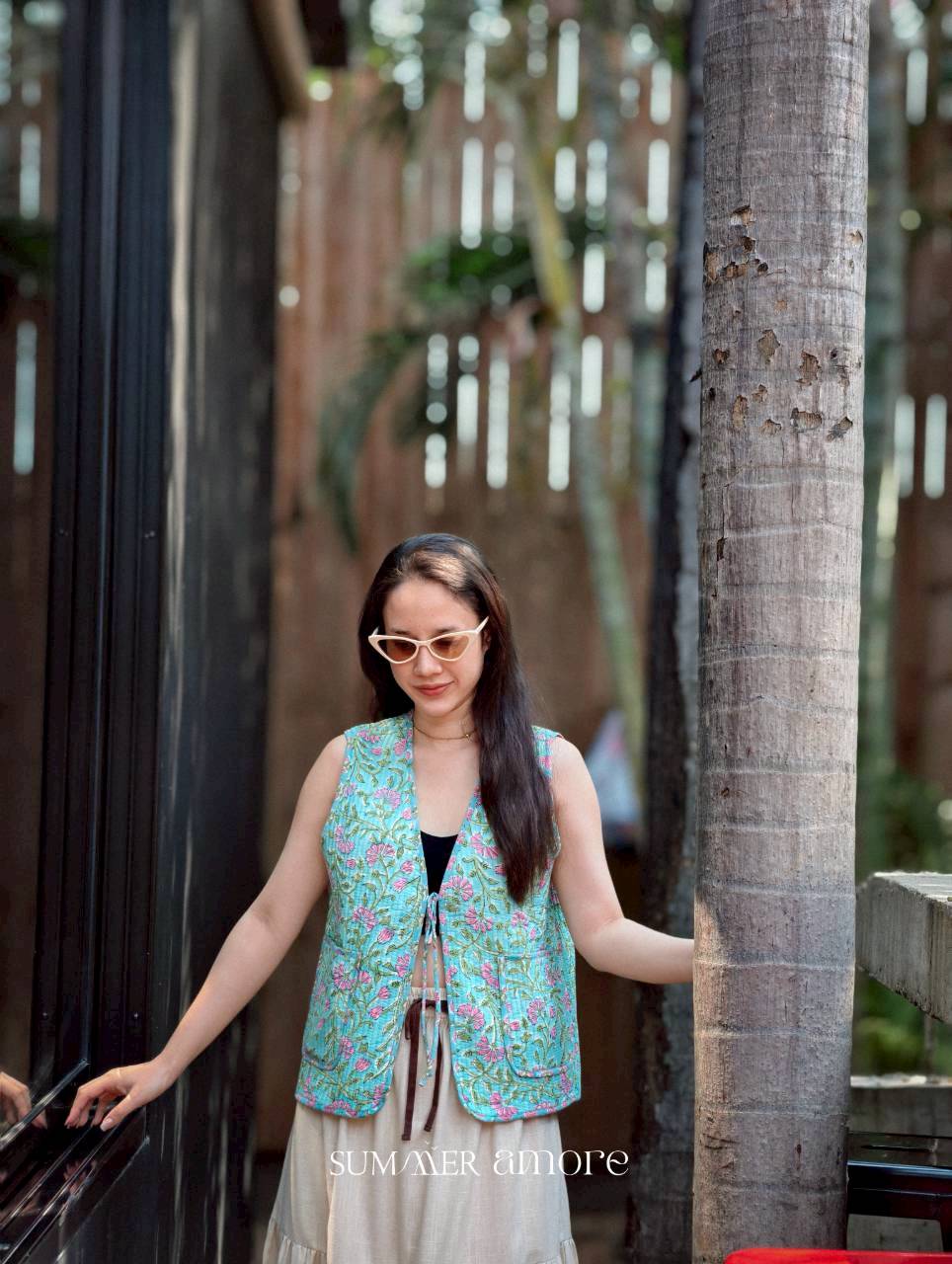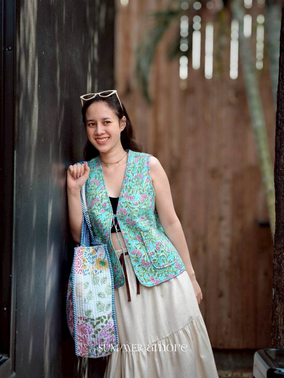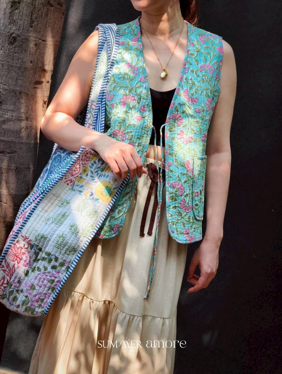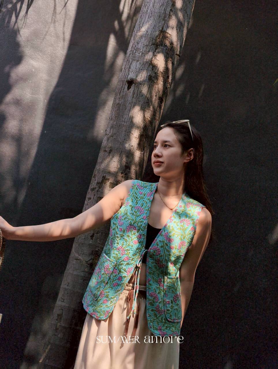 Tata vest เสื้อกั๊กงานพิมพ์มือ ใส่สลับด้านได้ มีกระเป๋า