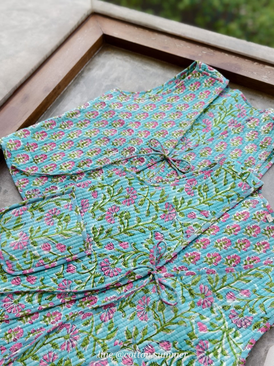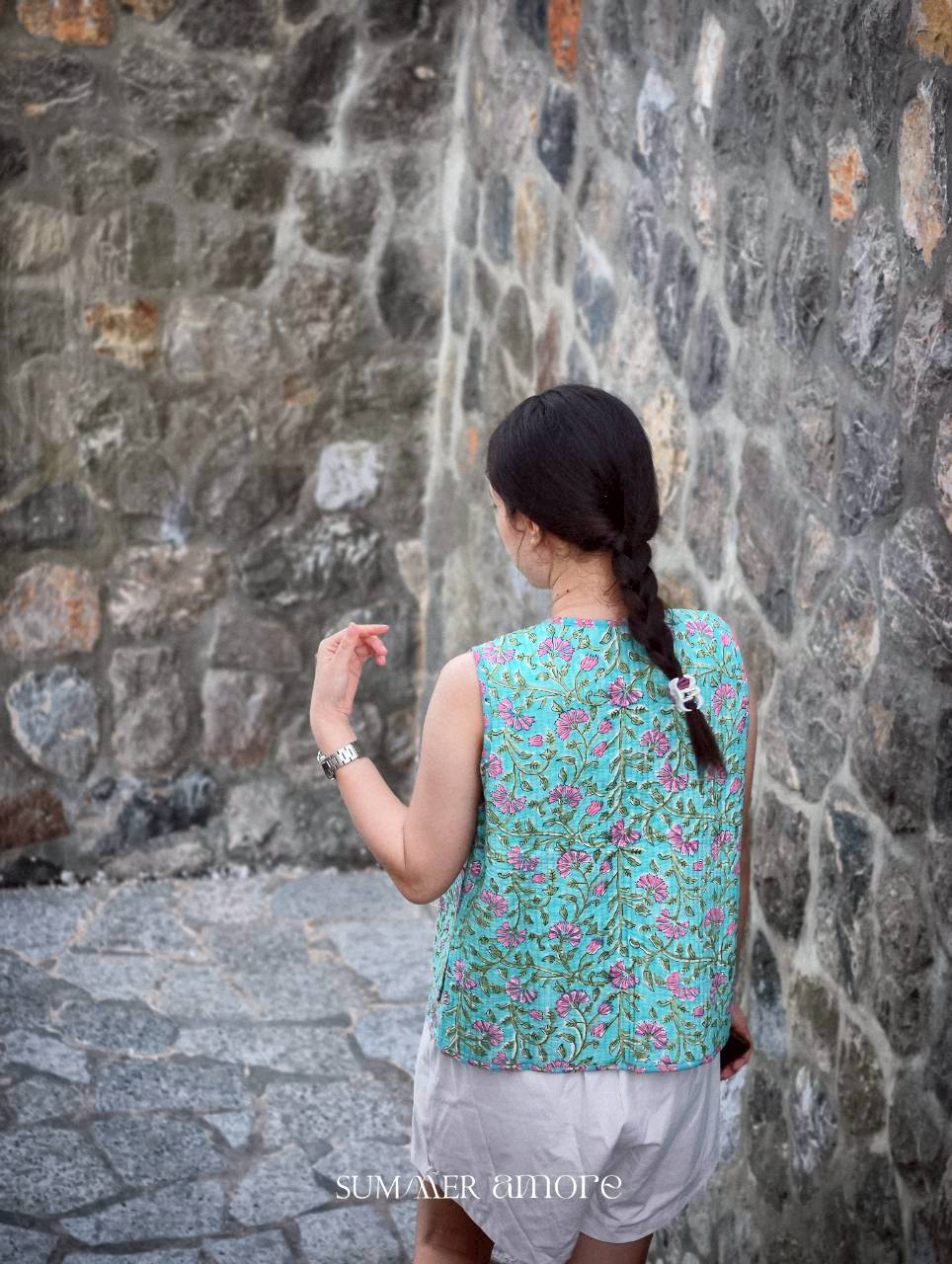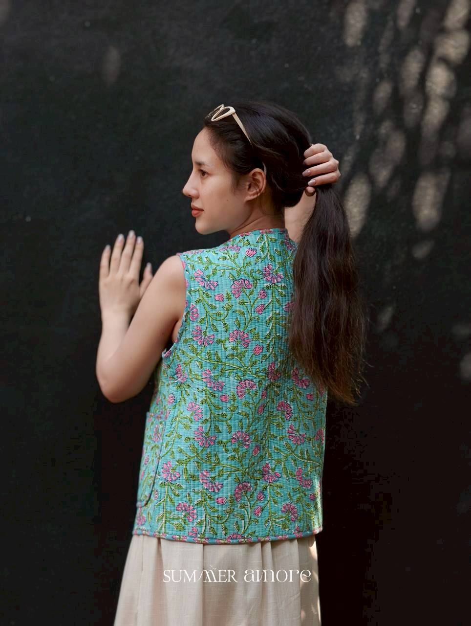 เสื้อกั๊ก(Tata vest )ผ้าอินเดียงานพิมพ์มือ - เขียวเข้ม
